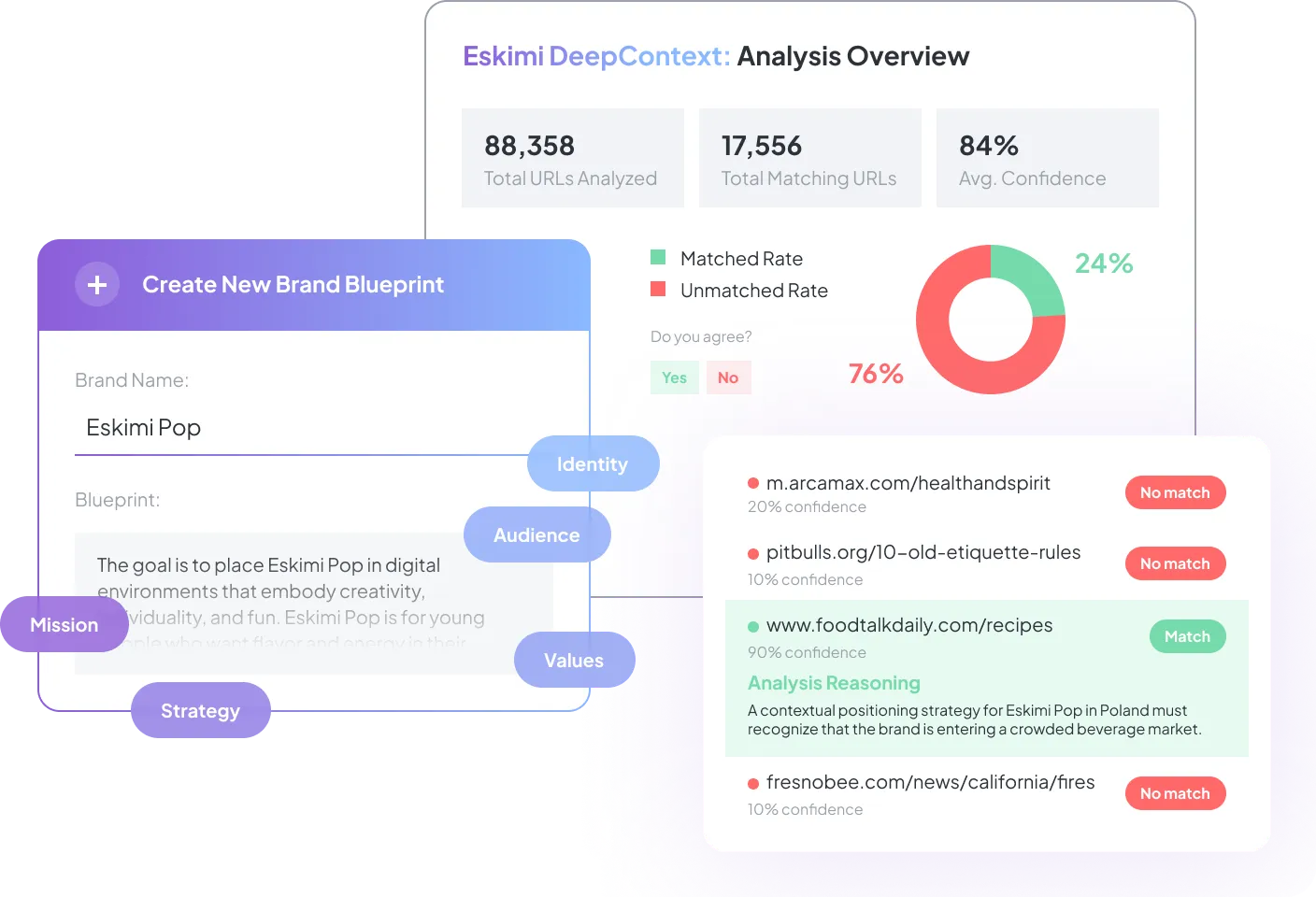 Сопоставляет контент с тоном, ценностями и культурными ассоциациями бренда.